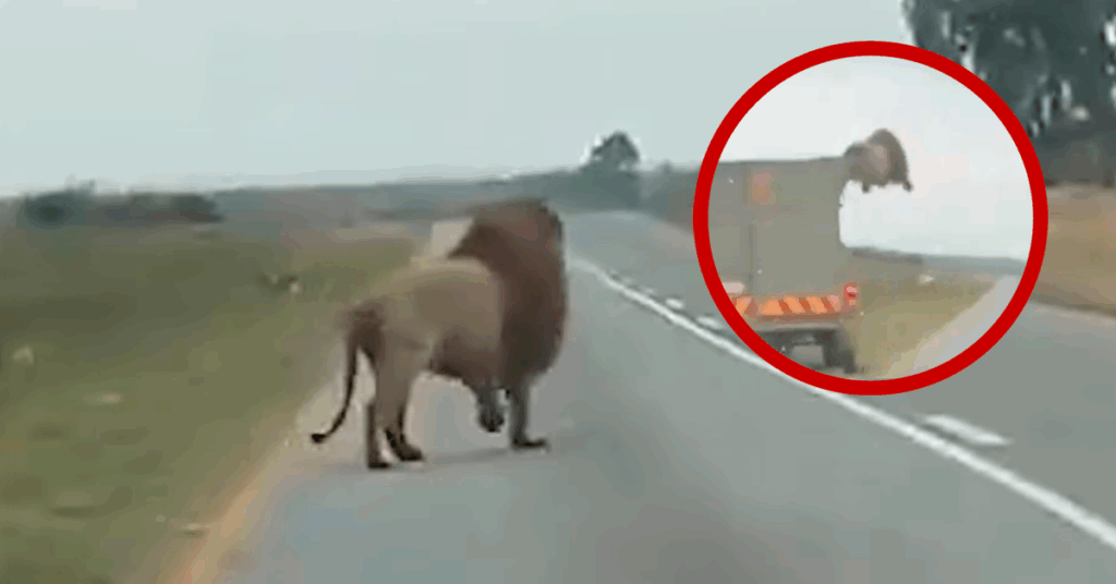 Un león protagonizó una escena que se volvió viral en redes sociales tras escaparse de un camión en movimiento en Sudáfrica. El felino logró saltar desde el techo del remolque mientras era transportado por la carretera.