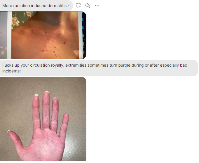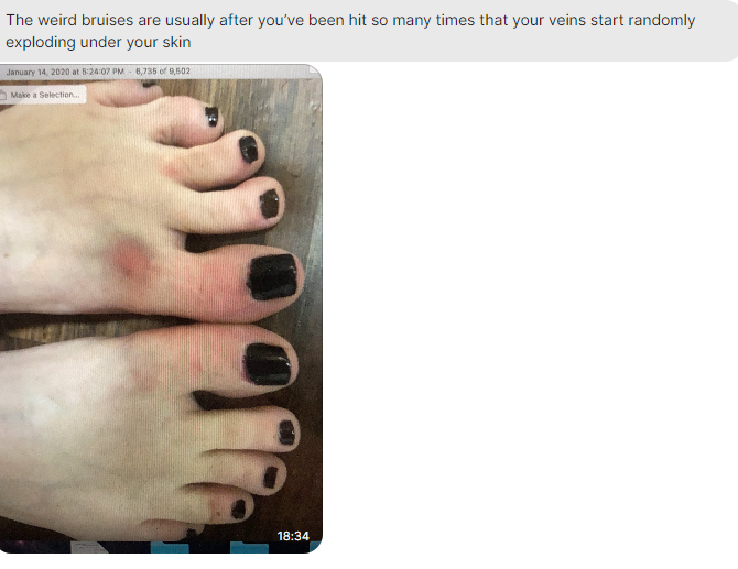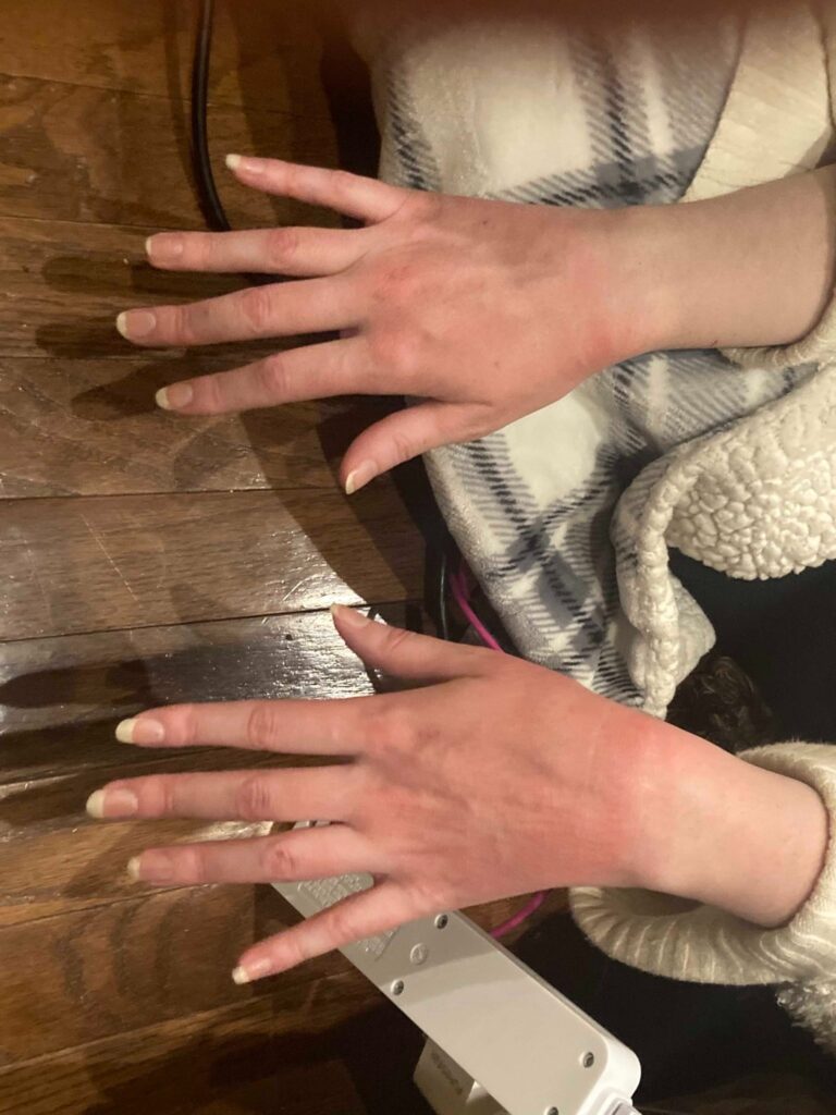 En el contexto de este reporte, Milburn compartió imágenes de las manos, pies, cuello y espalda de Amy tras haber sido ‘atacada’ con esta arma.